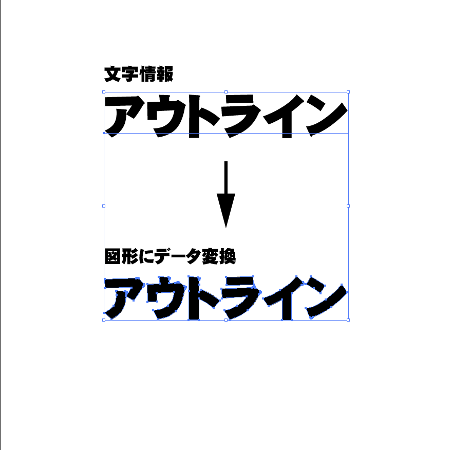 フォントのアウトライン化とは、文字を「フォント情報」から「図形情報(パス)」に変換する処理です。