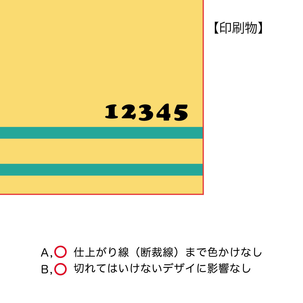 A, ○ 仕上がり線(断裁線)まで色かけなし