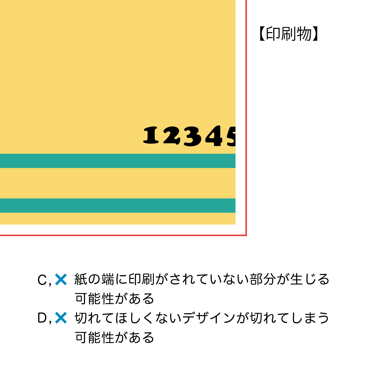 D, × 切れてほしくないデザインが切れてしまう可能性がある